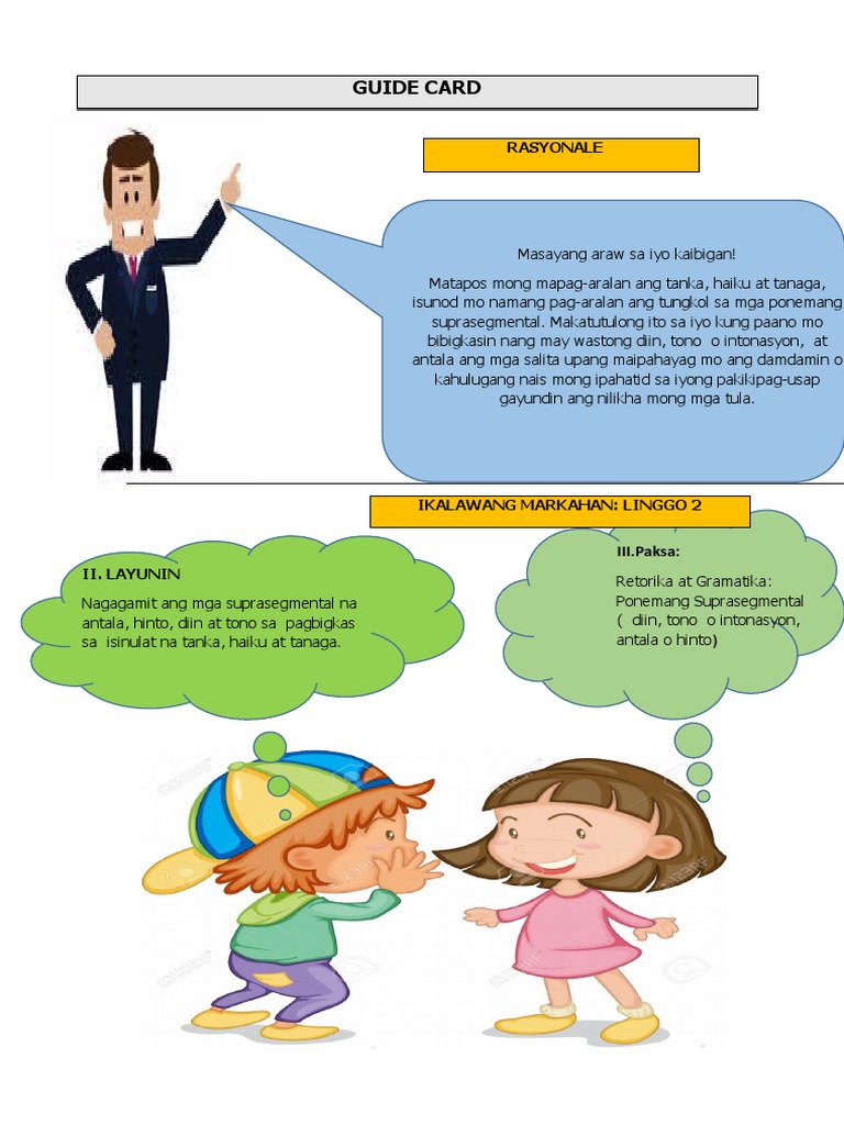 Bahagi rin ng pag-aaral ang paghubog sa iyong kasanayan sa wastong paggamit ng mga ponemang suprasegmental tulad ng diin tono o intonasyon at antala o hinto upang mabigkas mo nang wasto ang ilang halimbawa ng Tanka at Haiku nang wasto. 5 Ang Aralin 21 ay tungkol sa Tanka at Haiku na mula sa Hapon. 2 question Paano nagkakaiba ng pagbigkas ang tanka at haiku.